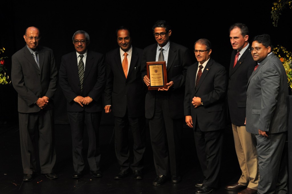 Seattle, 27th September,2012:WASITRAC ( Washington State India Trade Relation Action Committee) presented Guruji Dr. Chandrabhanu Satpathy ji with the “Building Bridges Across the Nations award” on Thursday, Sept 27th, 2012 at the Intiman Playhouse, Seattle Center for his immense contributions in connecting the whole world though his literary excellence and humanitarian endeavors. The event was celebrated as part of the opening reception of firstWashington state summit on US-India Trade. Mr. Debadutta Dash and Mr. H. Habib Co-Chair of Wasitrac hosted the event.