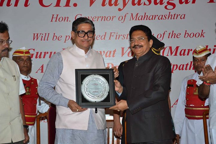 On 31st October, 2015, Dr. C. B. Satpathyji was felicitated by the Honourable Governor of Maharashtra Shri Chennamaneni Vidyasagar Rao for his immense service to humanity at a grand function organized at the “Darbar Hall” of Raj Bhawan at Mumbai. On this occasion, the Marathi translation of the Volume-I of the spiritual treatise ‘Shri Guru Bhagwat’ was released by Shri Vinod Tawade, Honourable Minister of Higher and Technical Education, Government of Maharashtra and its first copy was presented to Honourable Governor of Maharashtra.