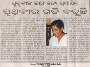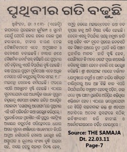 Around two years ago in His treatise “ Gopyu Ru Agopya” Shri Chandra Bhanu Satpathyji had predicted / stated about the change in the speed of revolution of the earth . While Japan has been devastated by earthquake, tsunami, the scientists have today found out that indeed there has been a change in the speed of revolution of the earth which has led to these calamities leading to devastation of multitudes of people.